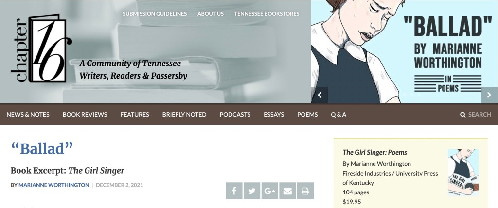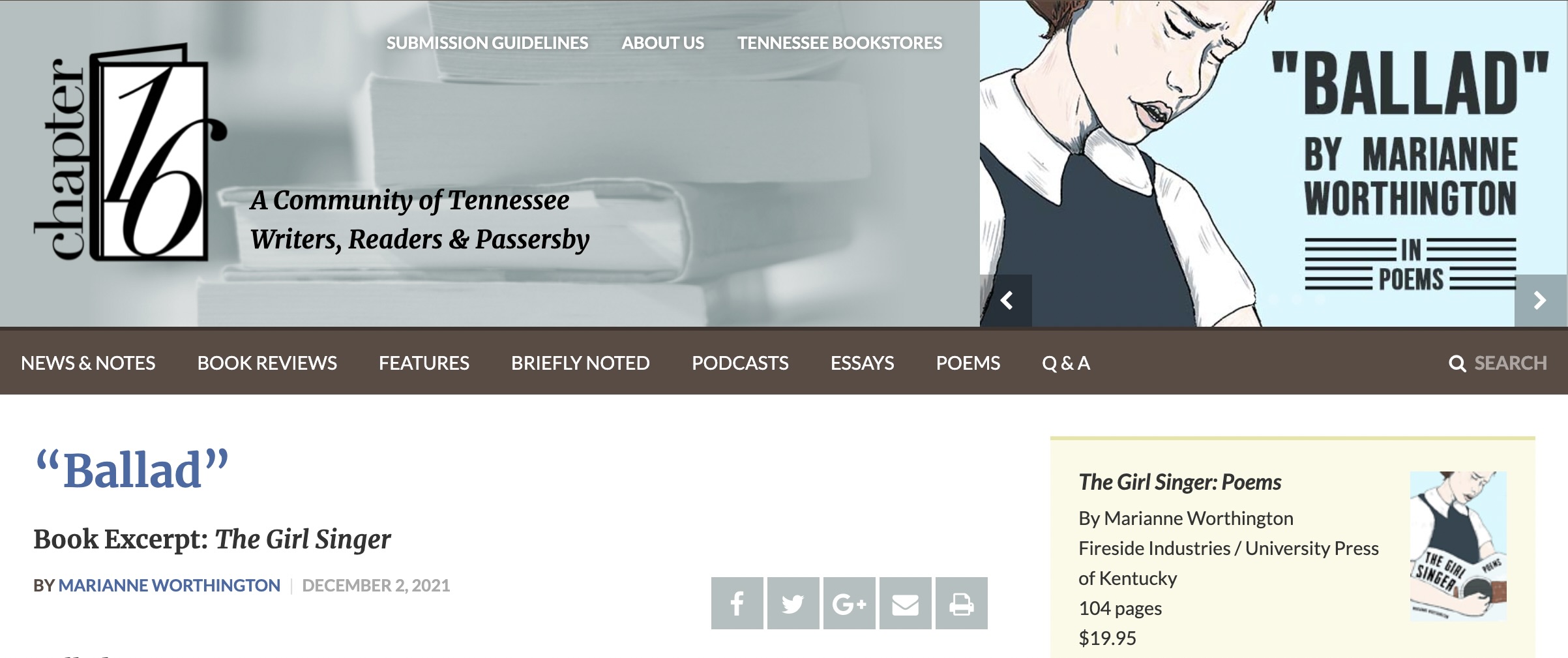 Available now! The Girl Singer is published by University Press of Kentucky/Fireside Industries (2021).